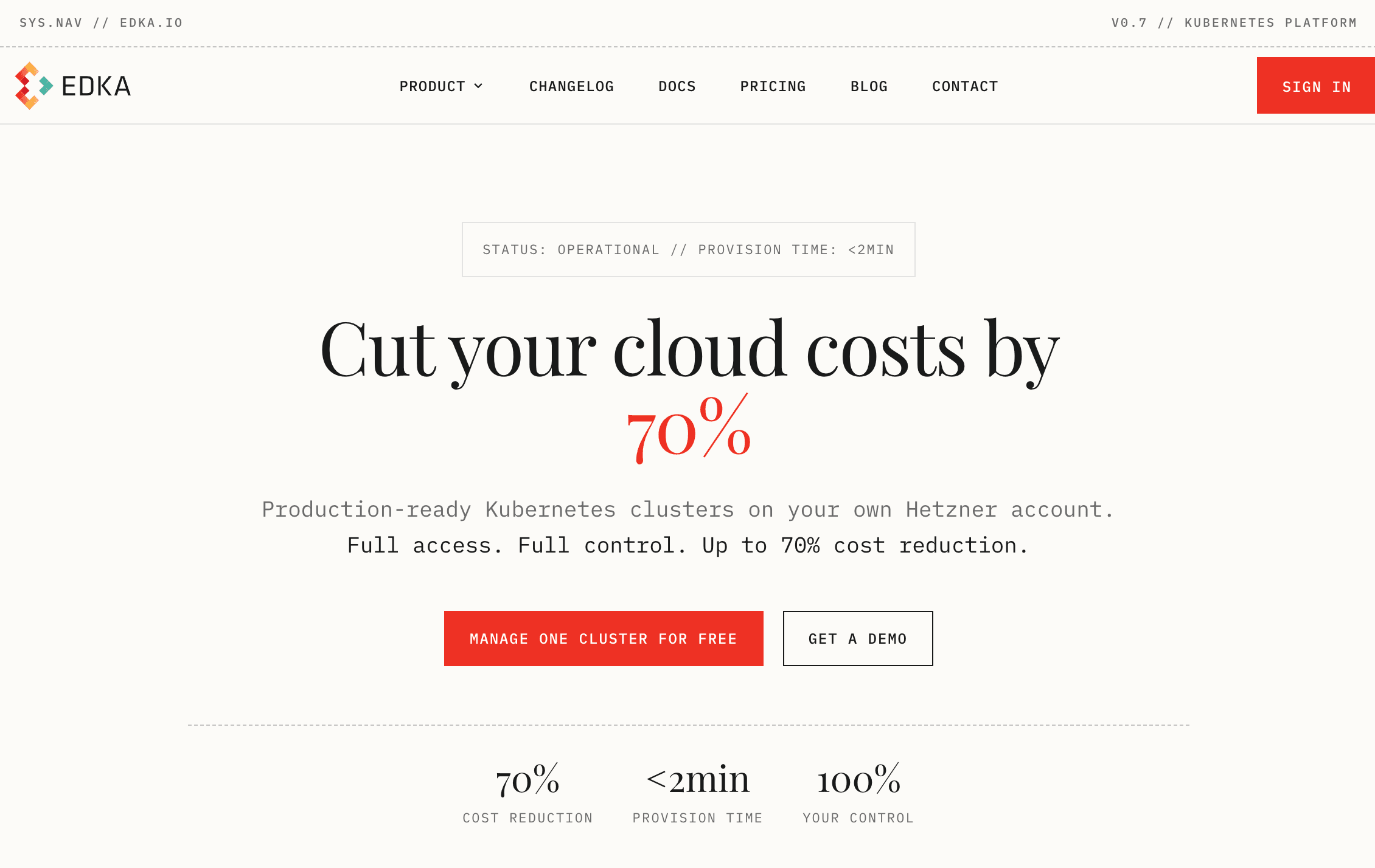 Edka is a managed service that provisions and operates Kubernetes clusters on your own Hetzner Cloud account — you keep ownership of the underlying infrastructure and the cloud bill, while Edka handles the control plane, add-ons, and day-two operations.