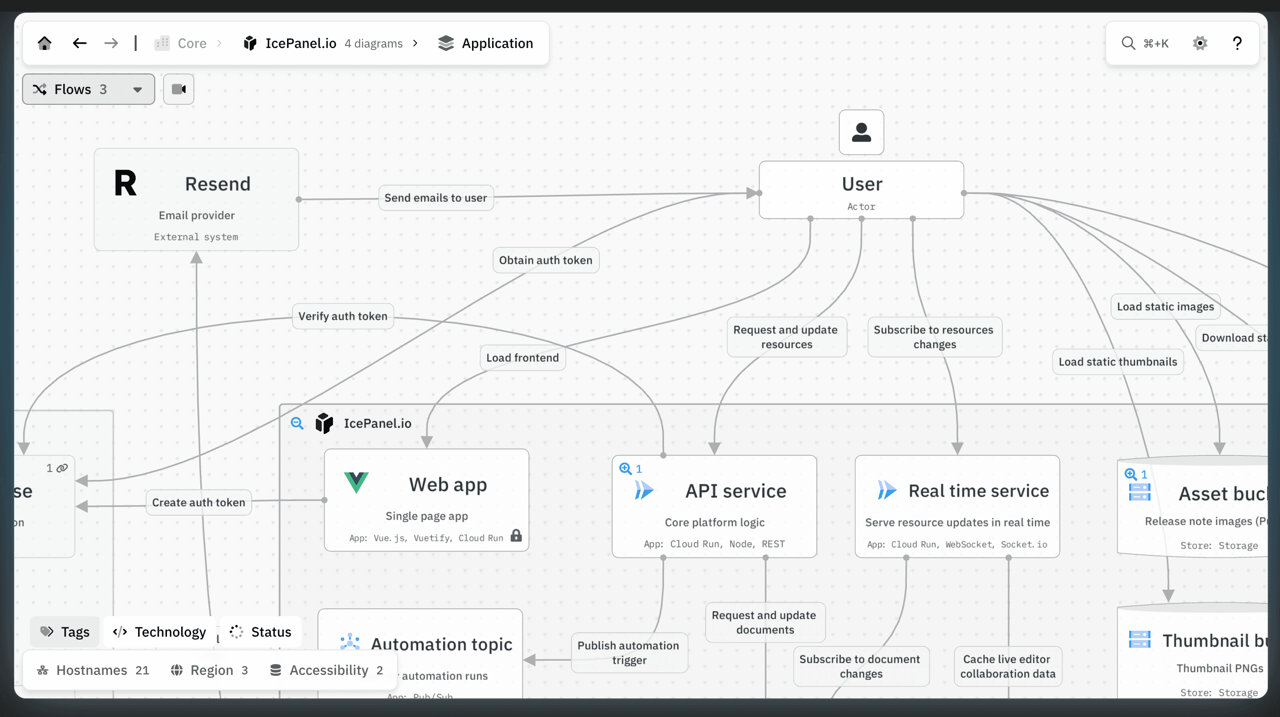 IcePanel is a collaborative architecture diagramming tool built around the C4 model — the four-level hierarchy of System Context, Container, Component, and Code that gives distributed system diagrams a shared grammar teams can actually agree on.