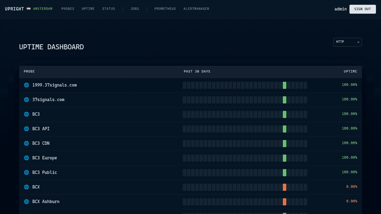 Upright is an open-source synthetic monitoring system from Basecamp that runs health check probes from multiple geographic sites and reports metrics via Prometheus — no SaaS dependency, no vendor lock-in.